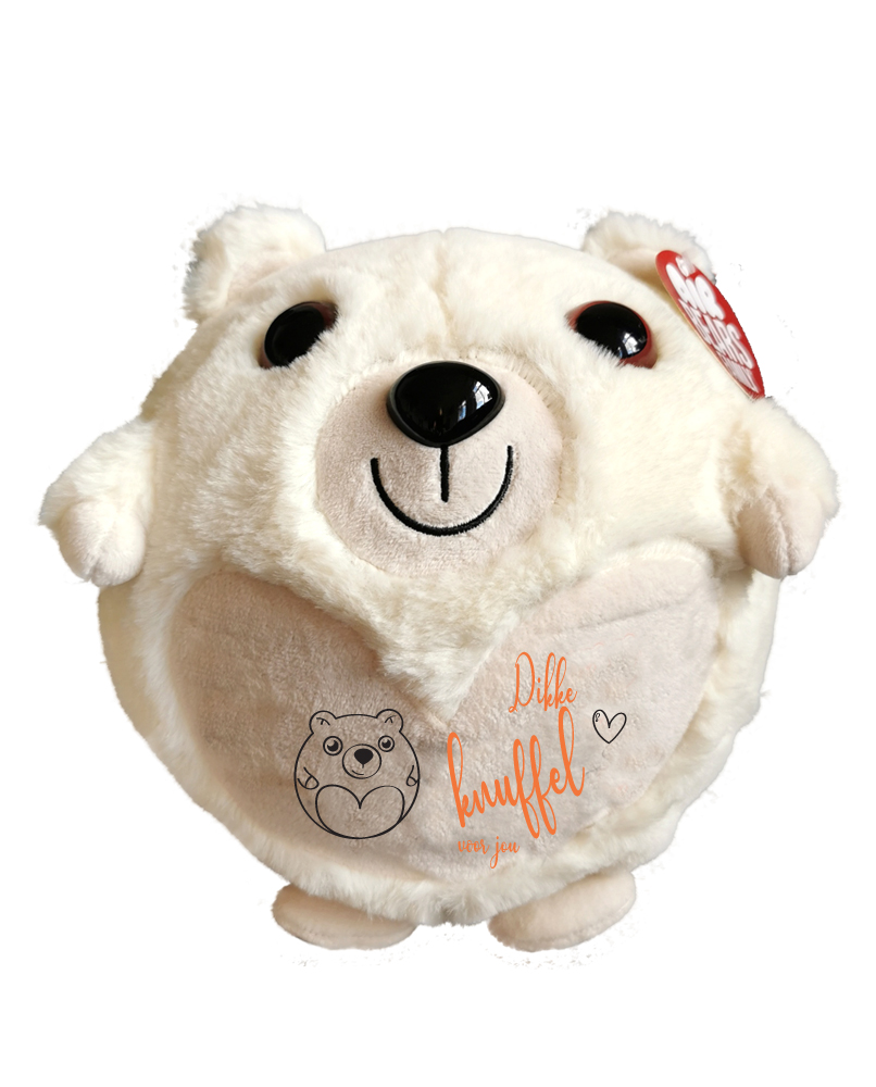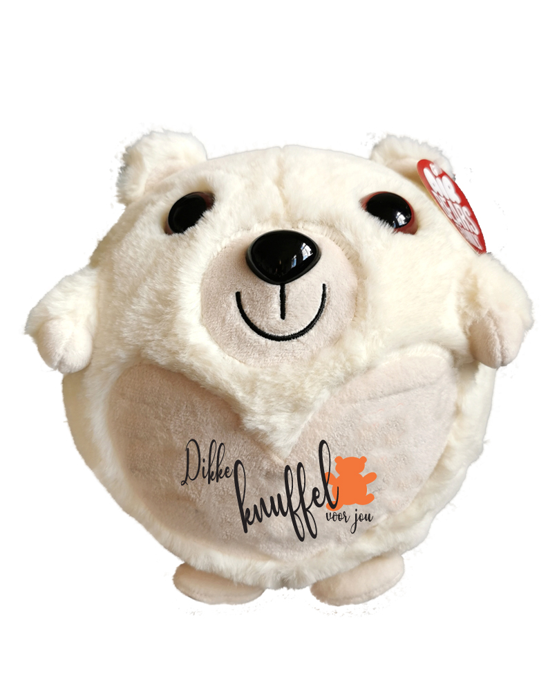 Wil jij iemand op een originele wijze verrassen? Dan is deze leuke ronde knuffelbeer echt een super tof cadeau! De knuffel is opblaasbaar, waardoor deze makkelijk door de brievenbus past. Zo wordt de verrassing nóg groter. Een 3D ansichtkaart, voor een verjaardag, Kerst en/of Oud en Nieuw of zomaar wanneer je wel iets speciaals wilt doen, maar niet langs kunt komen. De tekst wordt op de buik van dit lieve knuffelcadeau gedrukt.